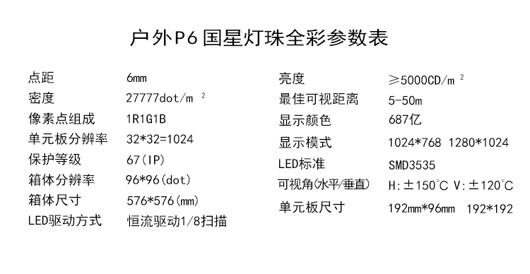 5.高精度的光学设计,使RGB三色LED显示屏的远场视角图完美匹配,以保证从任一角度都能得到视屏画面的完 美再现