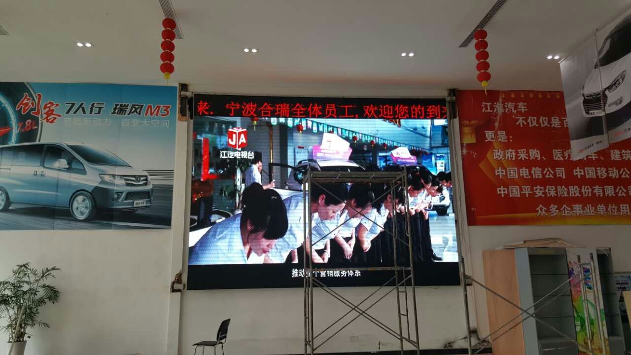 热烈庆祝我公司在浙江宁波,嘉兴,湖州等地,安装江淮4S分店P4室内全彩LED显示屏,感谢客户对我公司的信任,我公司一定用高品质,高要求,将LED显示屏做的更好。这几款LED显示屏采用的是台湾晶元芯片,高刷新显示屏,清晰度高,颜色鲜色,